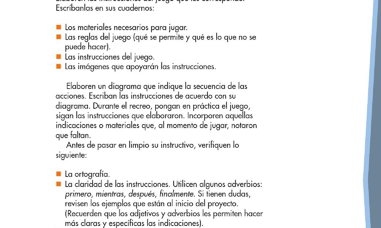 77%77% encontró este documento útil, marcar este documento como útil. Exponer que la forma de los verbos en los instructivos es el infinitivo. Guardarguardar juegos de patio para más tarde. Los juegos tradicionales son divertidos, didácticos, sencillos de aprender y sobre todo muy populares entre los niños de todas las edades. A continuación se le presentarán 5 instructivos.